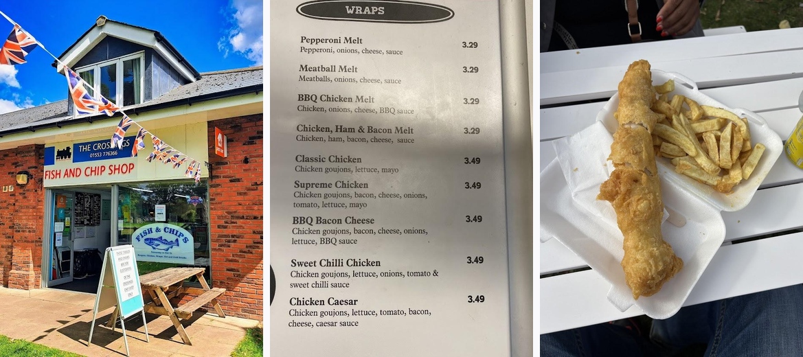 Discover The Crossings Fish and Chips in King's Lynn for delicious, freshly prepared fish and chips at unbeatable prices. Enjoy crispy batter, succulent cod, and tasty sausage wraps in a friendly atmosphere. Visit us at 68 Tennyson Rd, or call +44 1553 776366 to order today!