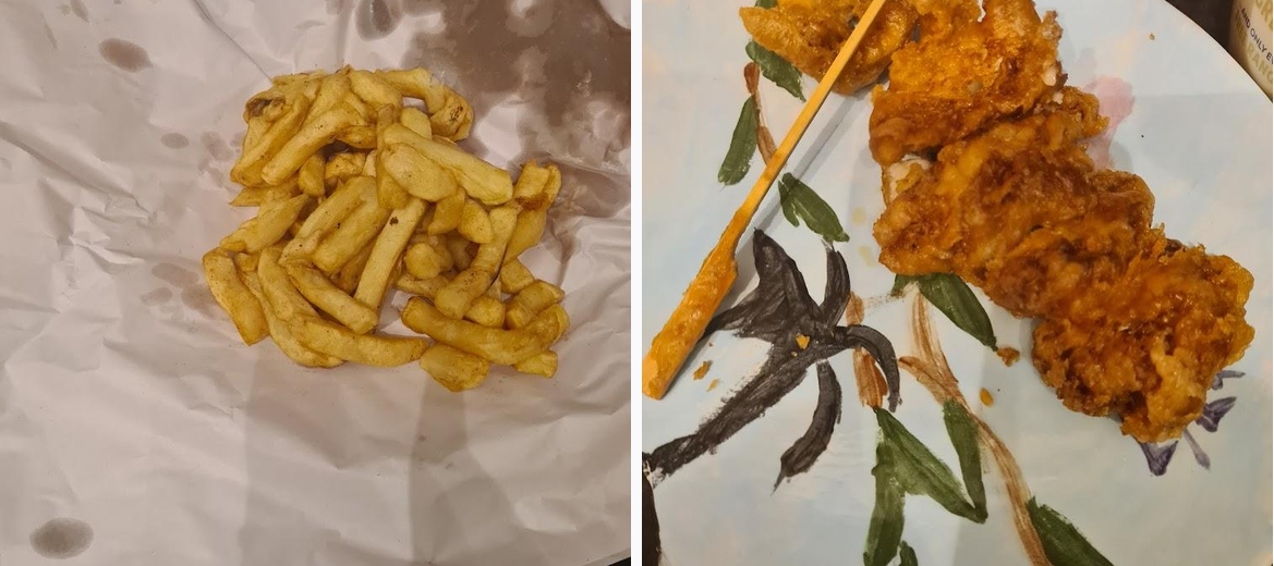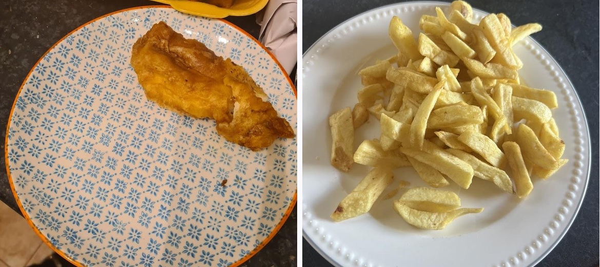 Ordered a cod and chips and curry sauce, and two kids meals which come with fruit shoot. Chicken nuggets and chips and sausage and chips. Bill came to £15.40 (almost £5 cheaper than Frydays for the same order (but with better drinks)). The quality and flavour is excellent, the staff are very friendly and personable. It's great value at a brilliant location, just opposite the park. Highly recommend.
